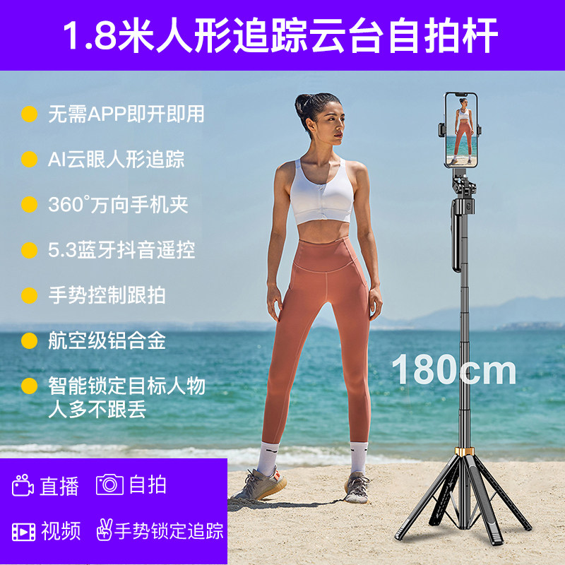 【智能AI跟拍云台】2026新款四轴自拍杆人脸追踪360旋转旅游便携拍照Vlog拍摄手机直播三脚架支蓝牙防抖补光