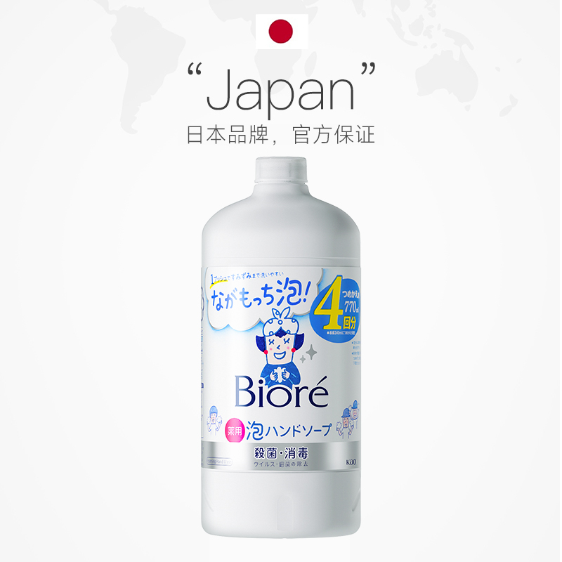 日本KAO花王泡沫洗手液淡香温和家用清洁滋润大容量补充装770ml