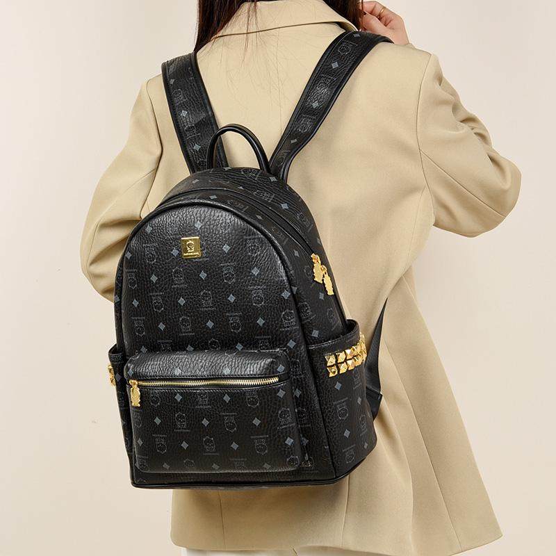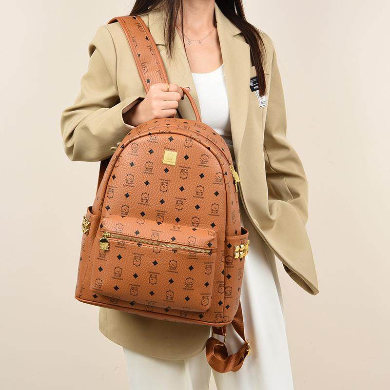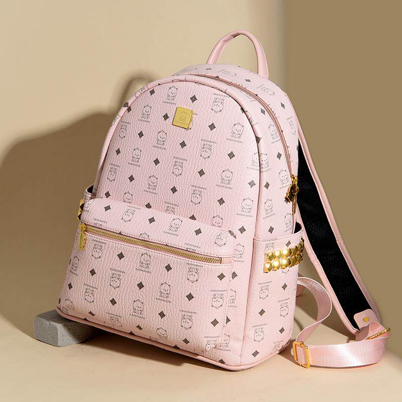 加大号小熊印花背包时尚潮流洋气铆钉双肩包大容量学生书包旅行包