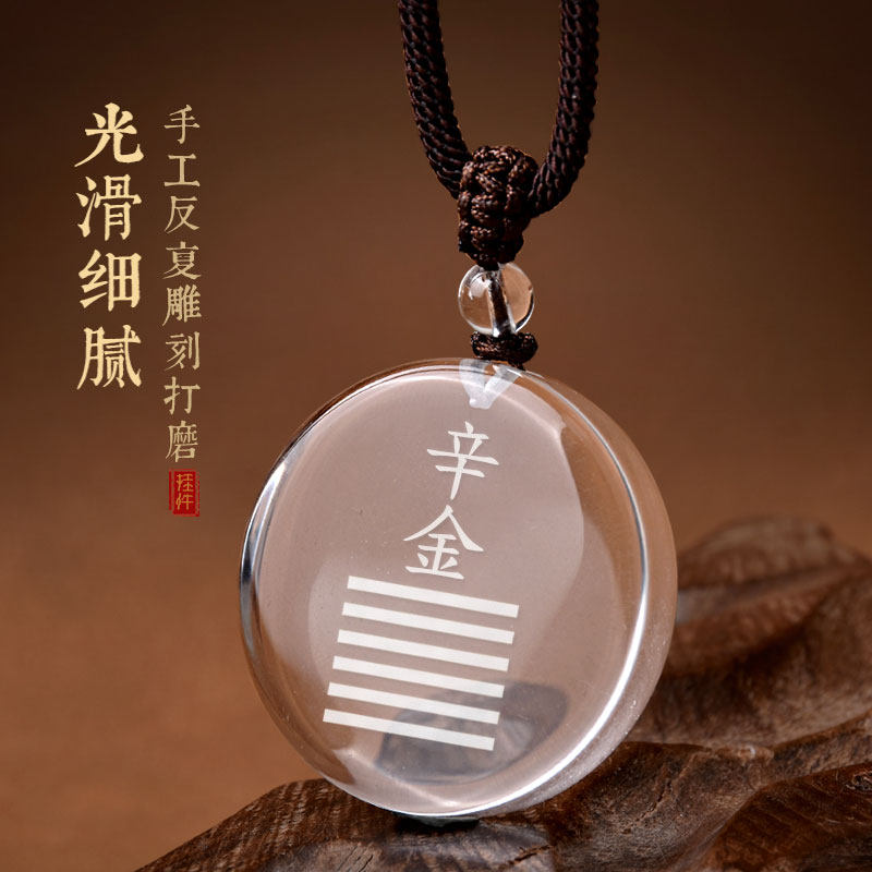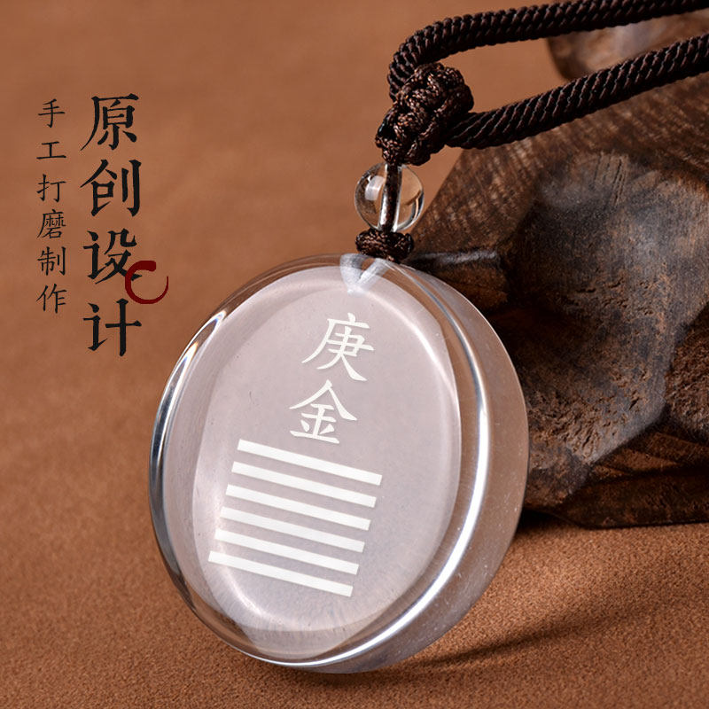 天然白水晶五行属金饰品庚金吊坠辛金能量牌挂件缺补金乾卦无事牌
