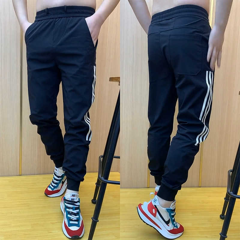 春夏季潮牌三条杠男裤子2024男士束脚休闲卫裤修身时尚百搭小脚裤