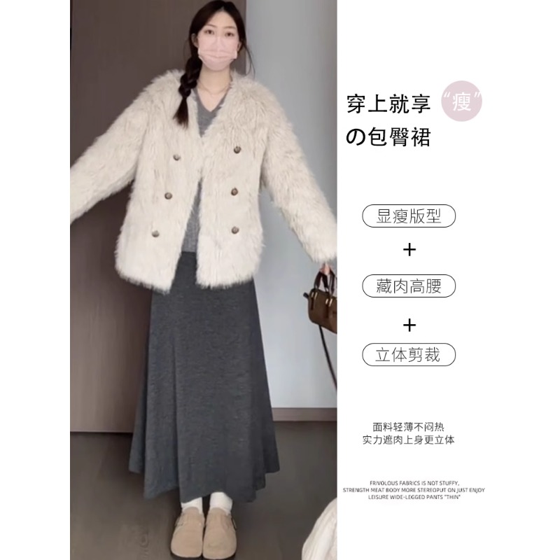 黑色针织鱼尾裙女春秋冬2025新款高腰显瘦a字中长款包臀半身裙子