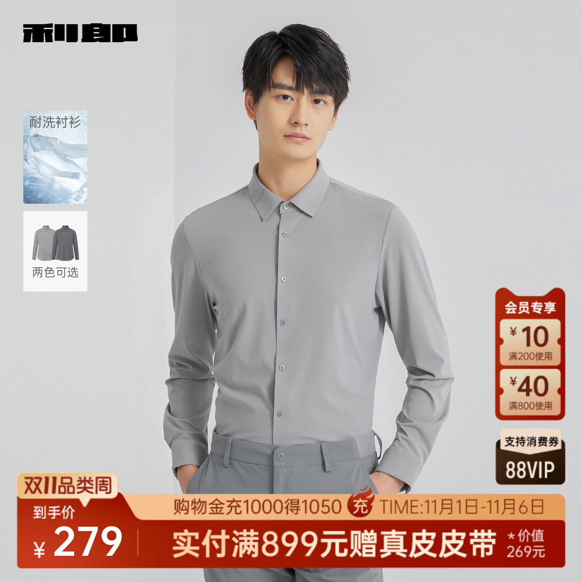 【耐洗】利郎官方衬衫男士2025春季新款纯色修身休闲男款衬衣男