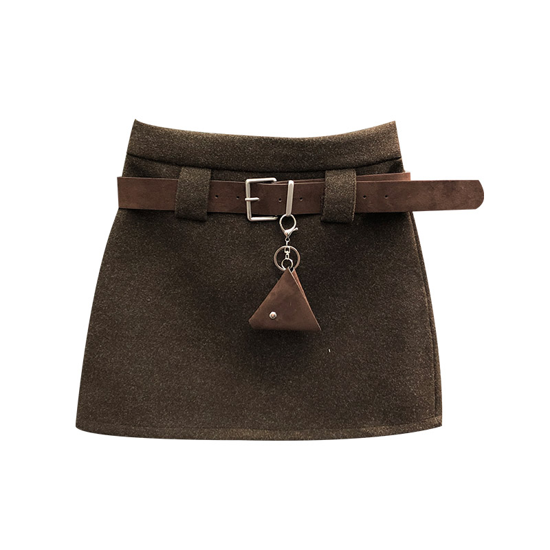 咖啡色高腰毛呢短裙女2025秋冬时尚减龄百搭A字打底半身包臀裙子