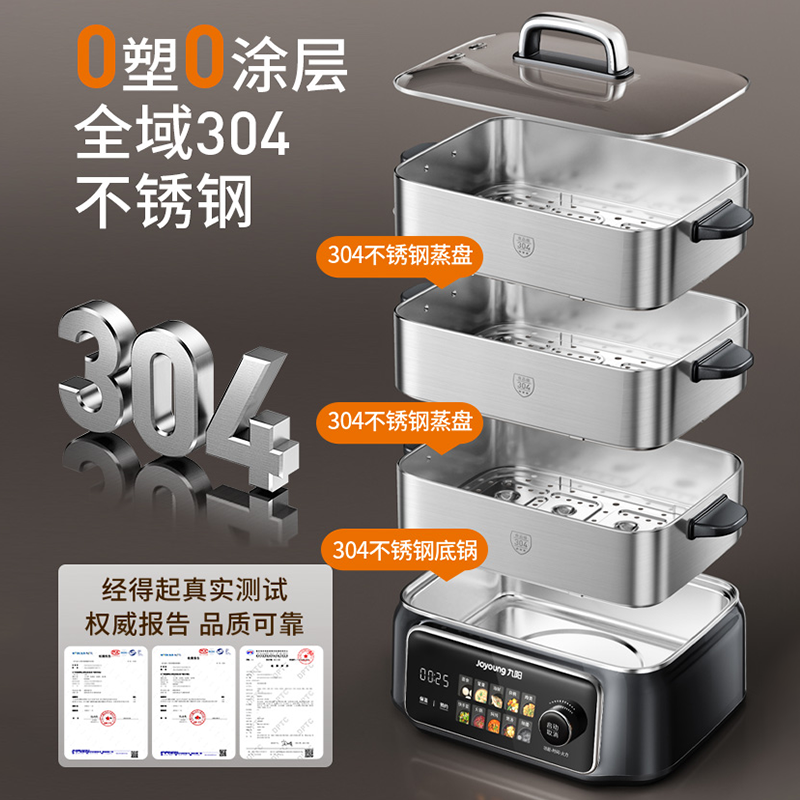 九阳电蒸锅多功能家用三层不锈钢蒸煮炖一体锅大容量新款旗舰正品