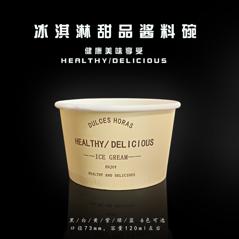 冰激凌球杯120ml一次性冰淇淋酸奶甜点品酱料小纸碗盒带盖 可定制