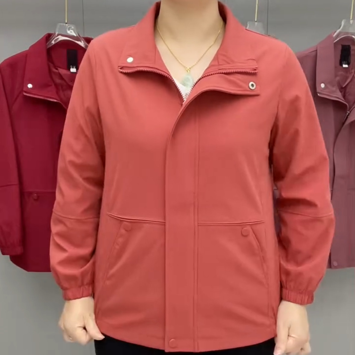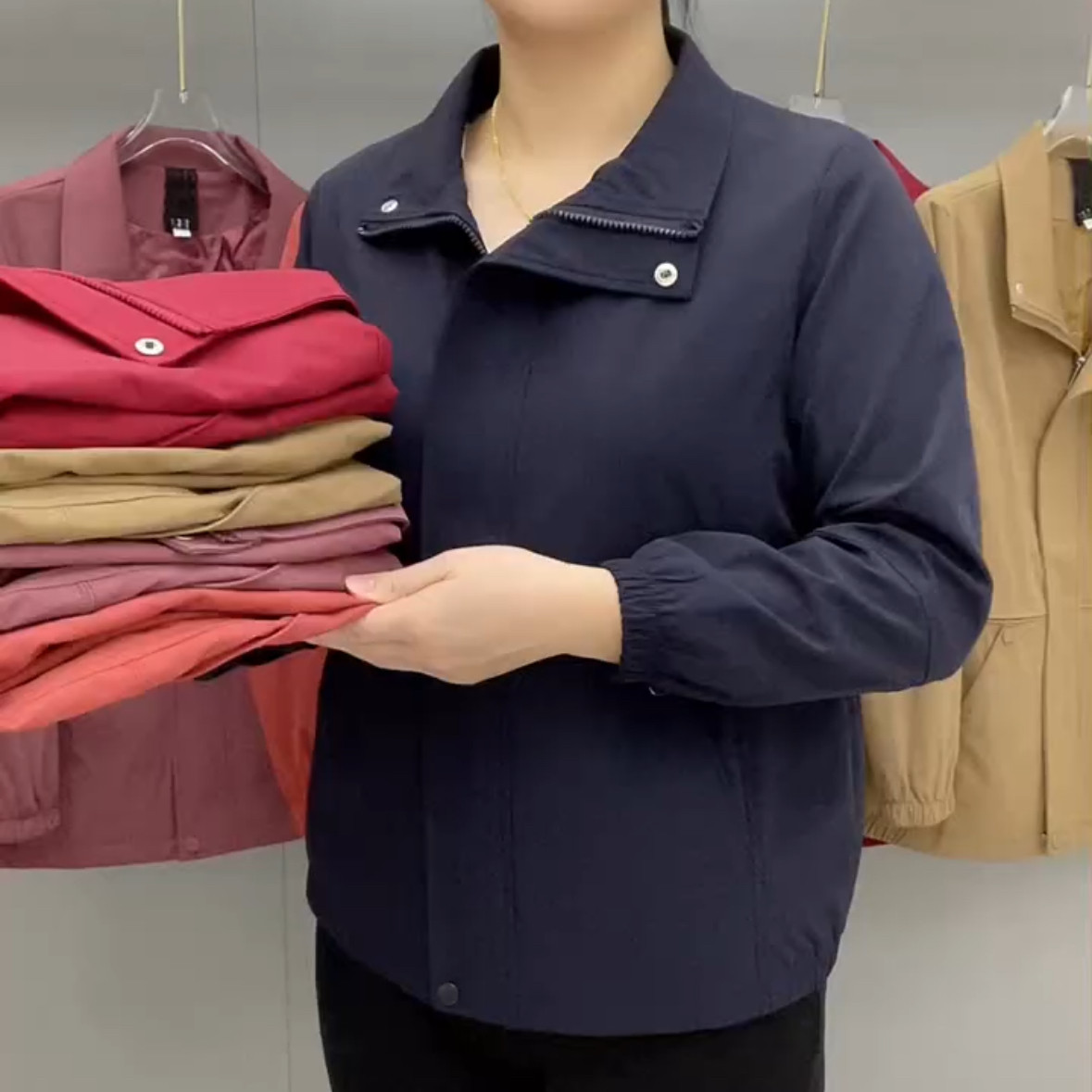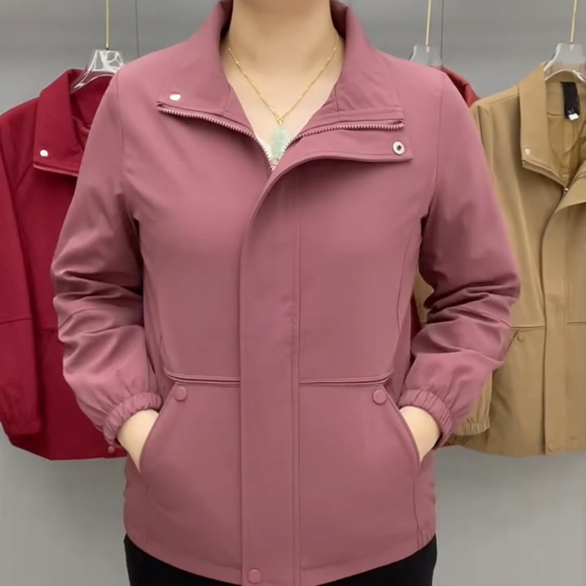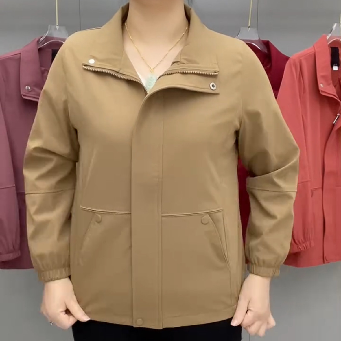 25年秋新款时尚妈妈减龄短款纯色风衣外套中年翻领拉链开衫女上衣