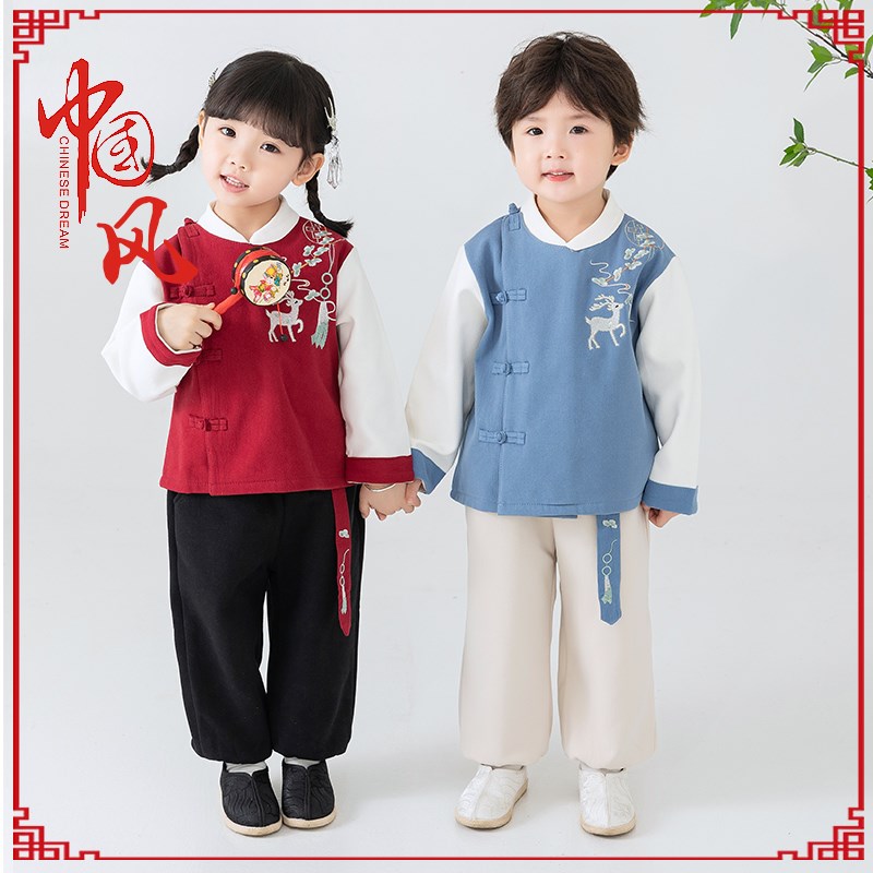 汉服男童春季套装秋冬季宝宝唐装儿童周岁礼服中国风元旦表演出服