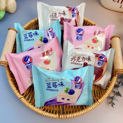 帕菲巧克力涂饰蛋糕蛋类芯饼蓝莓味草莓味巧克力味西式蛋糕早餐