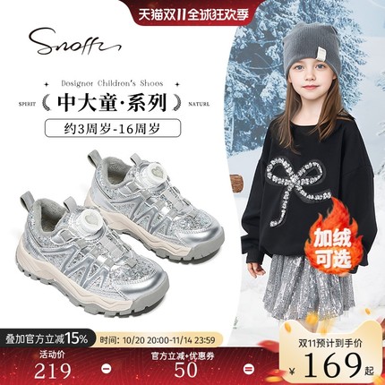斯纳菲女童运动鞋秋冬新款户外鞋防滑透气保暖加绒登山百搭休闲鞋