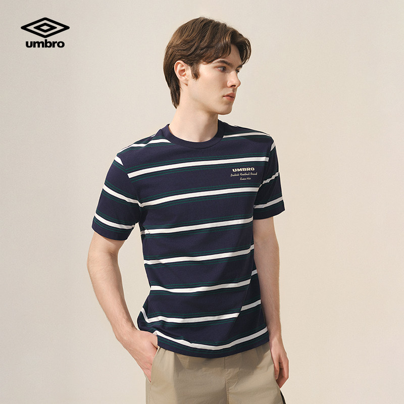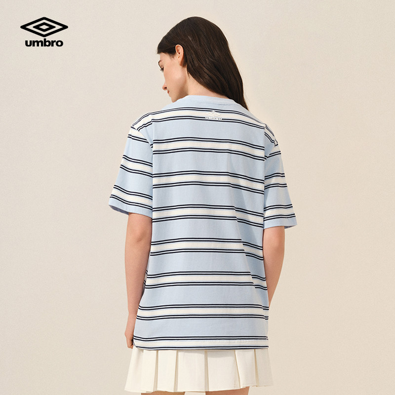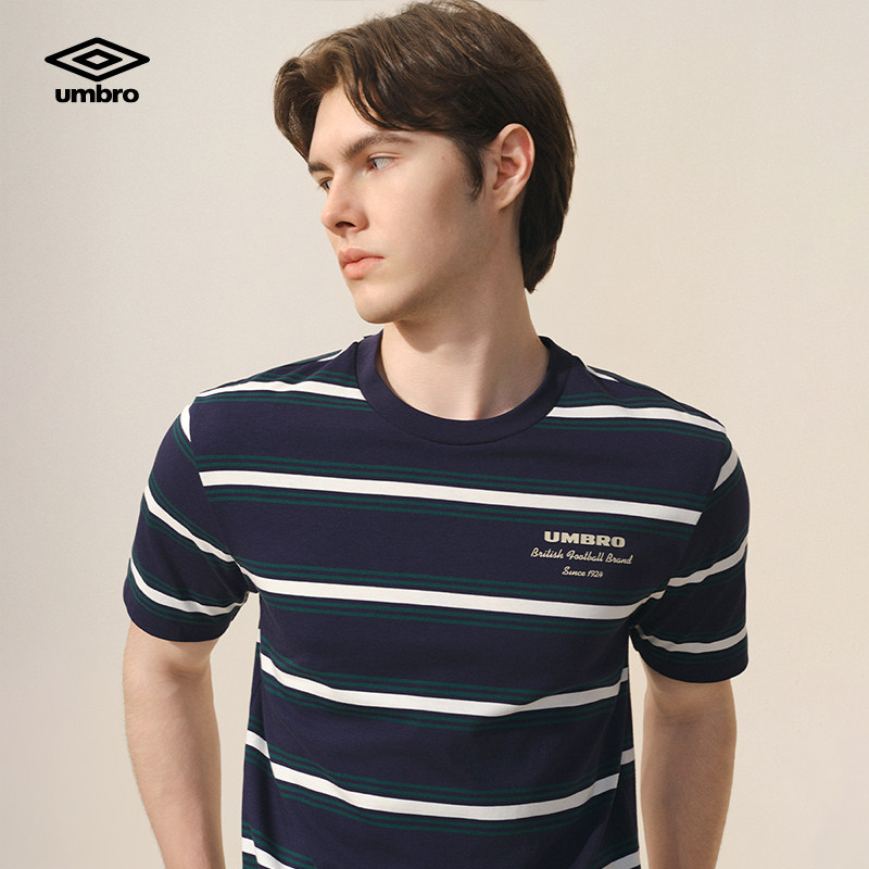 umbro茵宝官方短袖复古条纹新款宽松百搭夏季圆领t恤男女同款上衣
