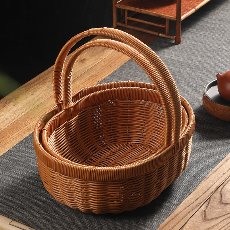 仿藤编水果篮家用大号收纳筐提篮野餐篮手工编织鸡蛋筐买菜篮子