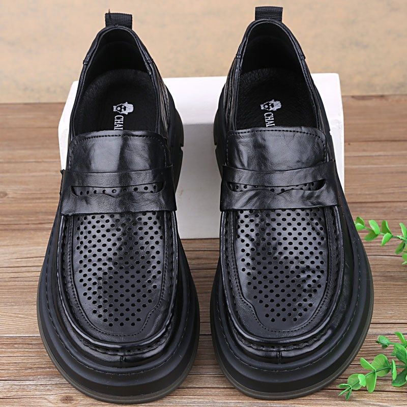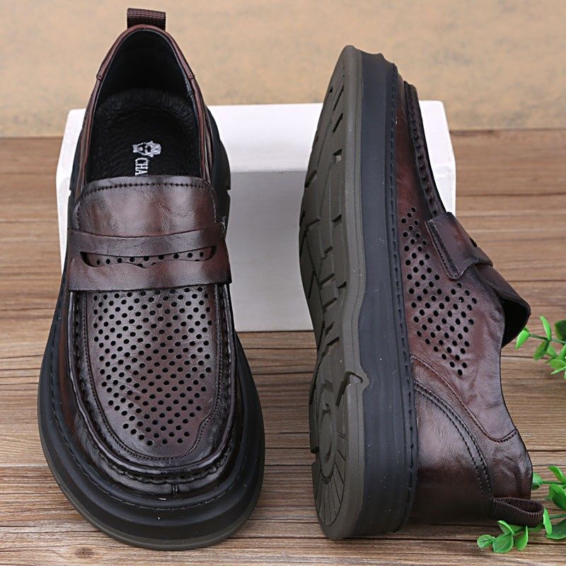 夏季男凉鞋厚底真皮商务休闲皮鞋洞洞鞋镂空透气大头皮鞋肥型套脚