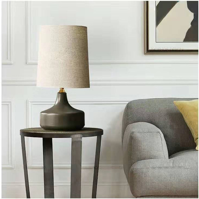 古镇宝辉明珠北欧台灯卧室床头灯具陶瓷简约灰色现代美式客厅装饰