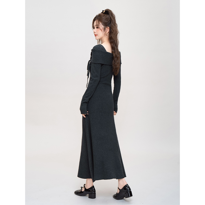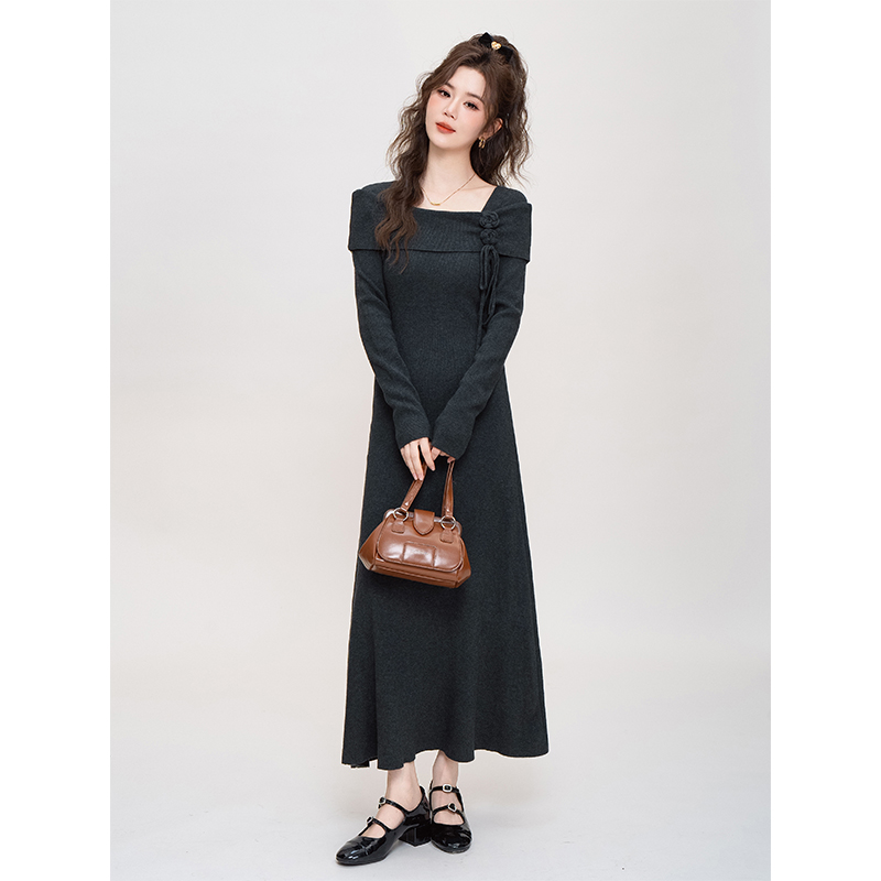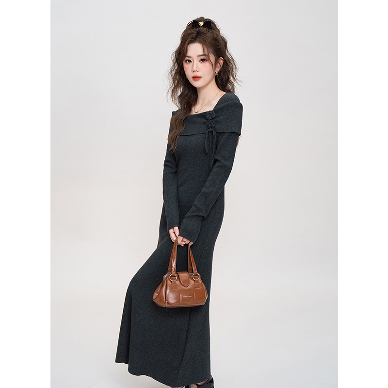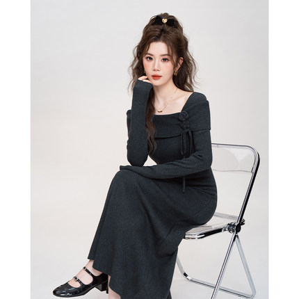 法式减龄长袖打底针织连衣裙女秋