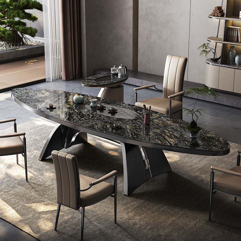 诚骏意式轻奢岩板茶桌高档别墅茶室办公桌带茶台一体式家用茶台桌