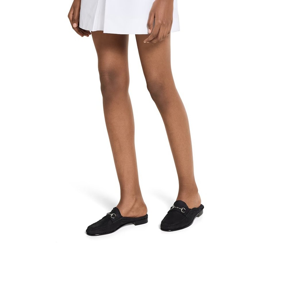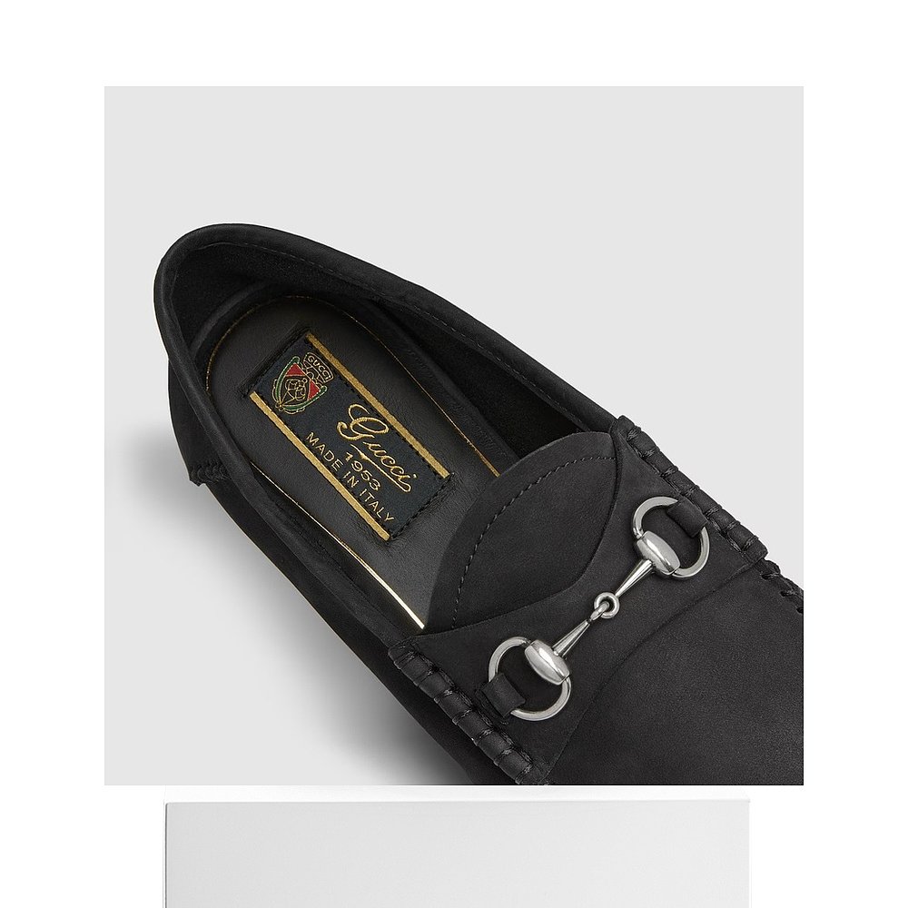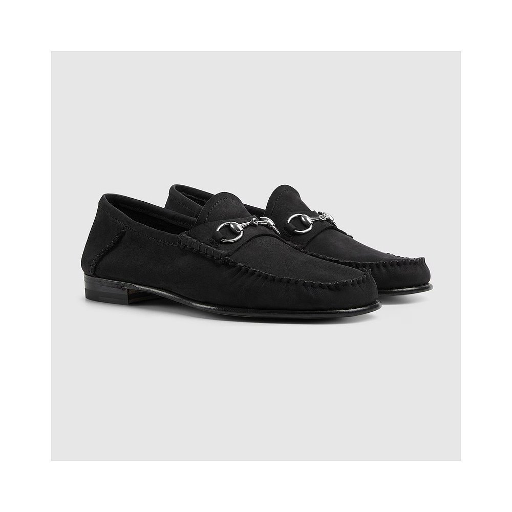 自营欧洲直邮Gucci/古驰 Gigi系列女士黑色麂皮马衔扣乐福鞋
