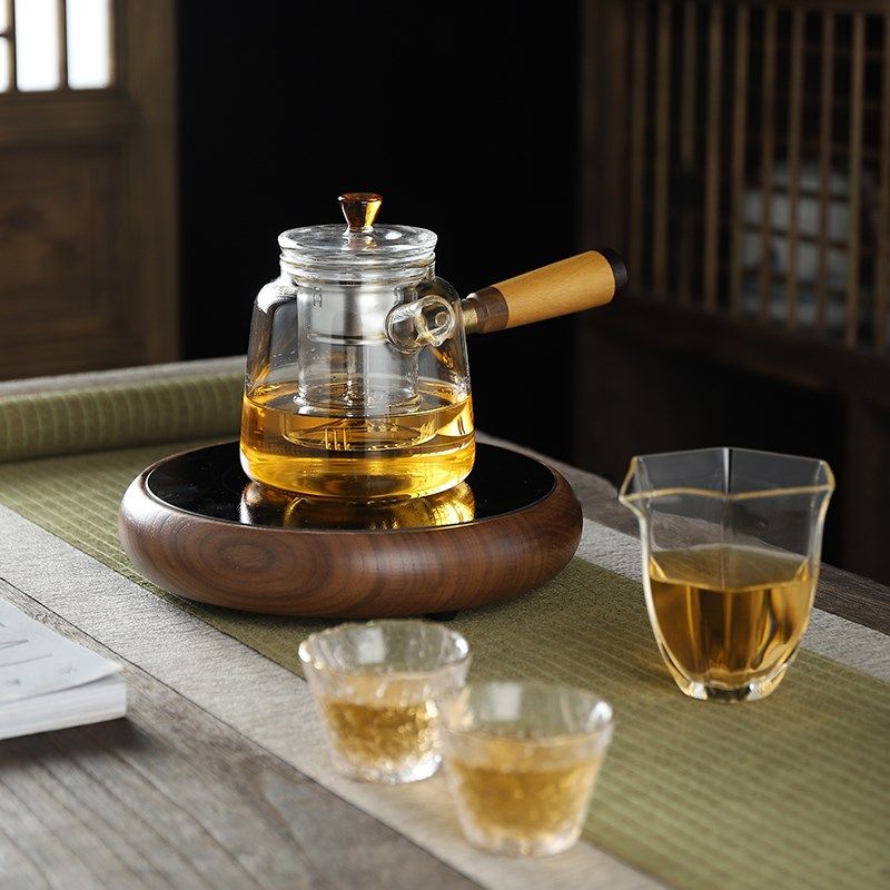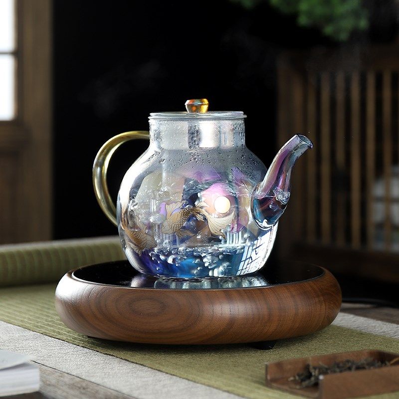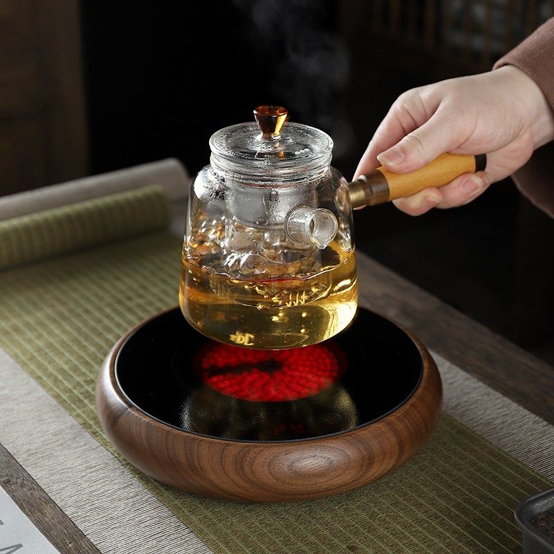 高端圆形北美胡桃木电陶炉茶炉家用小型超薄烧水泡茶炉不挑壶围炉