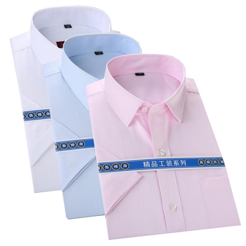 男士短袖纯白色衬衣长袖衬衫商务正装职业纯棉上衣粉蓝工作服面试