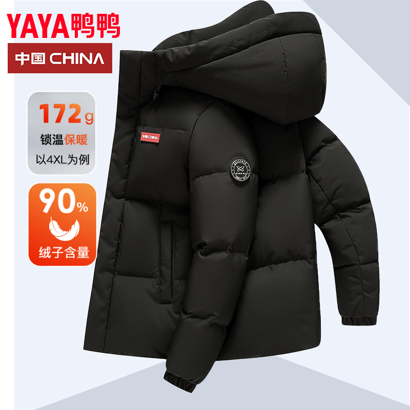 鸭鸭品牌羽绒服男短款冬季加厚2025年新款连帽保暖官方旗舰店外套