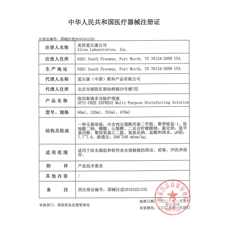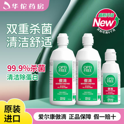 爱尔康傲滴护理液355*2+120ml隐形眼镜护理液爱尔康美国进口杀菌