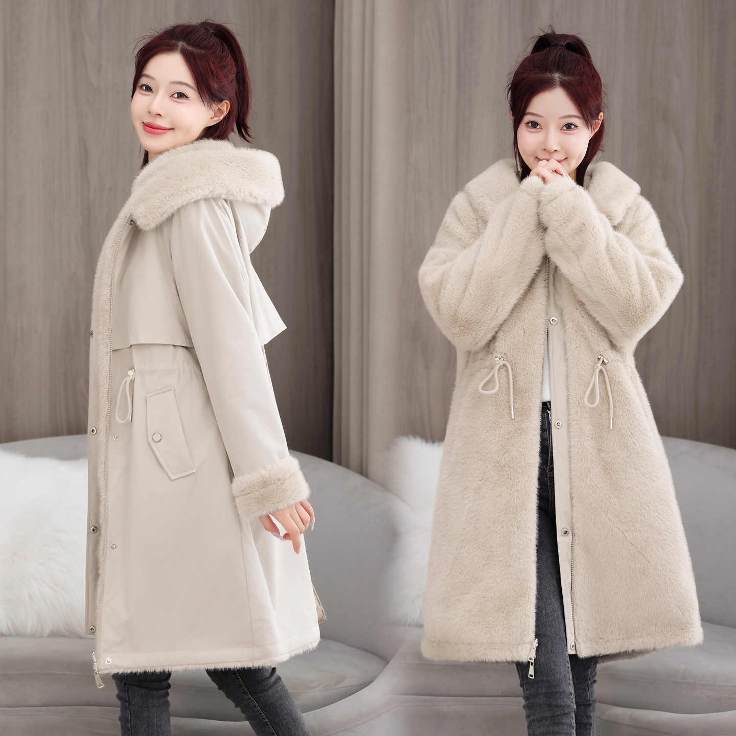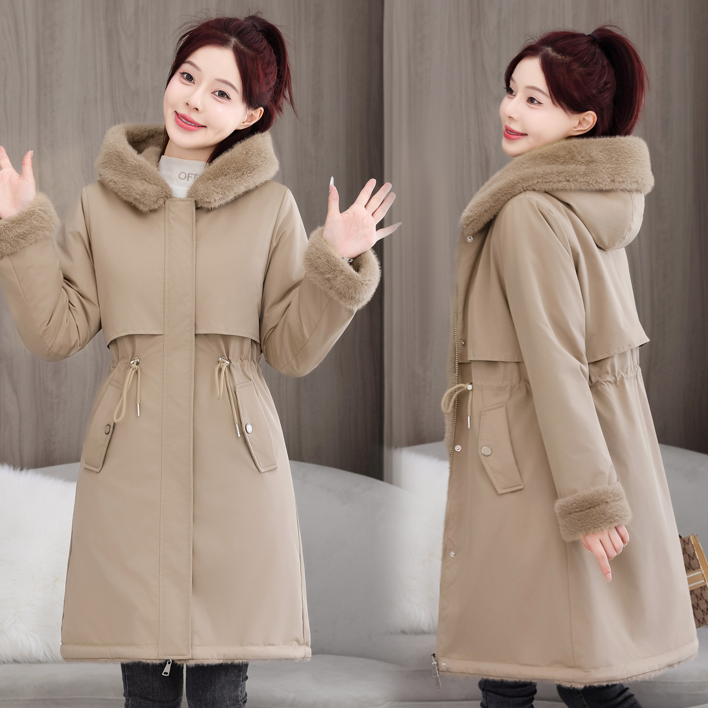 2025冬季派克服女中长款加绒加厚两面穿棉袄宽松可拆袖棉衣外套潮
