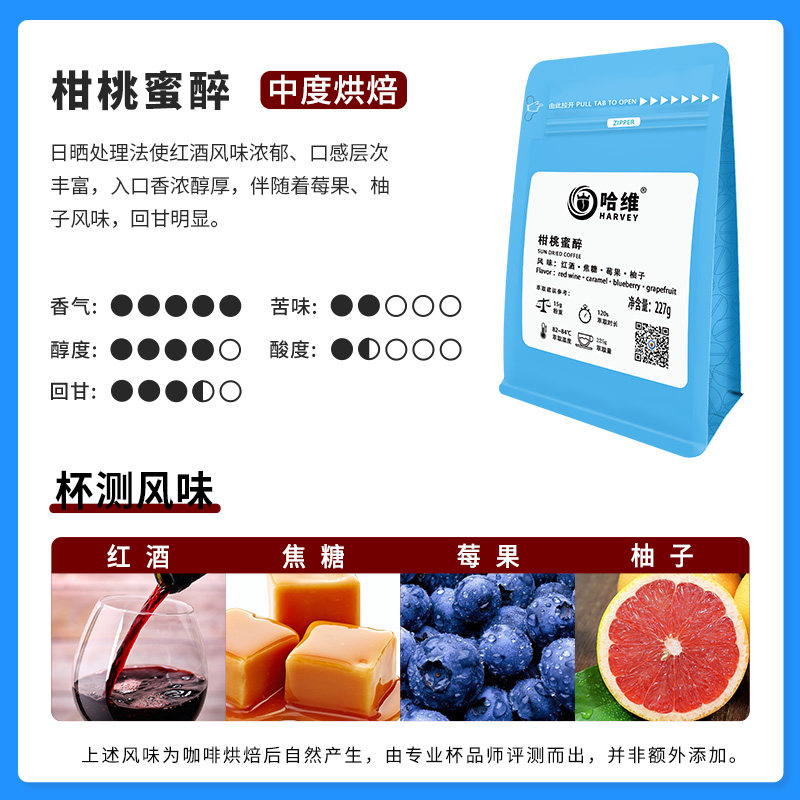 哈维新鲜烘焙红酒日晒咖啡豆227g