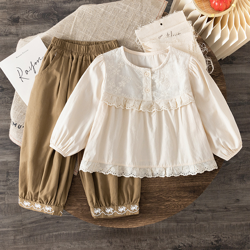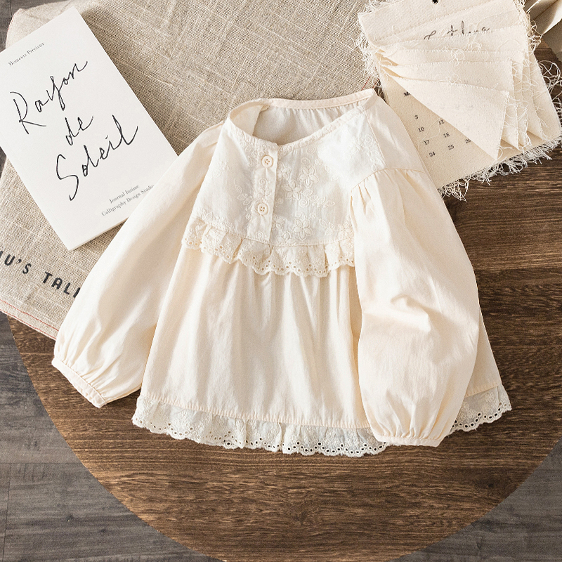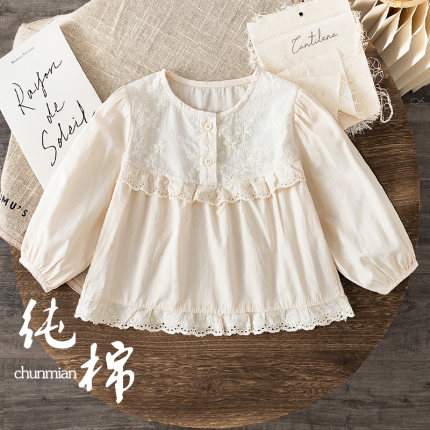 女童衬衫秋季新款2025小女孩法式蕾丝甜美上衣宝宝长袖纯棉娃娃衫