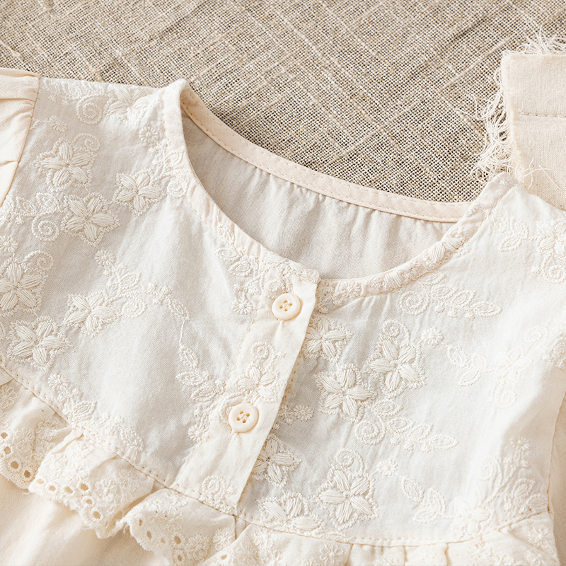纯棉面料法式春秋圆领花边衬衫