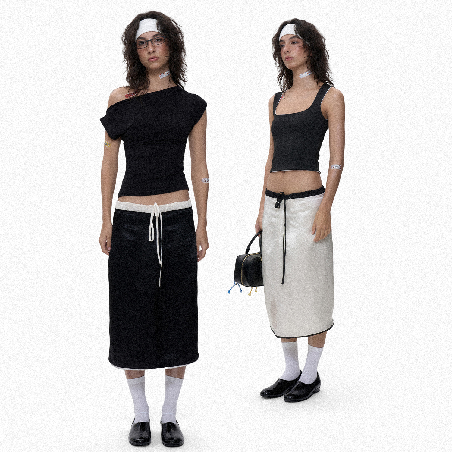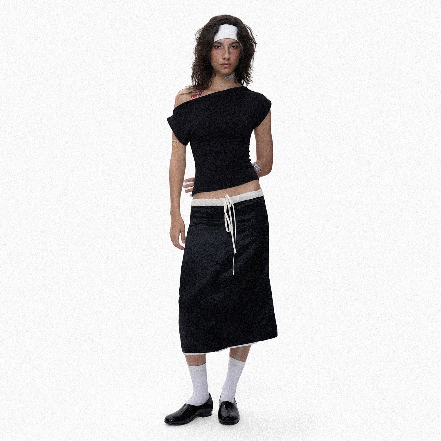 no info‘优雅与反叛切换’抽绳双腰拼接开衩多面穿褶皱半身裙女