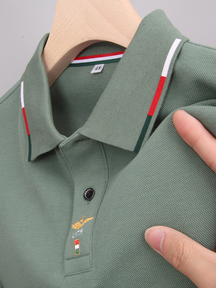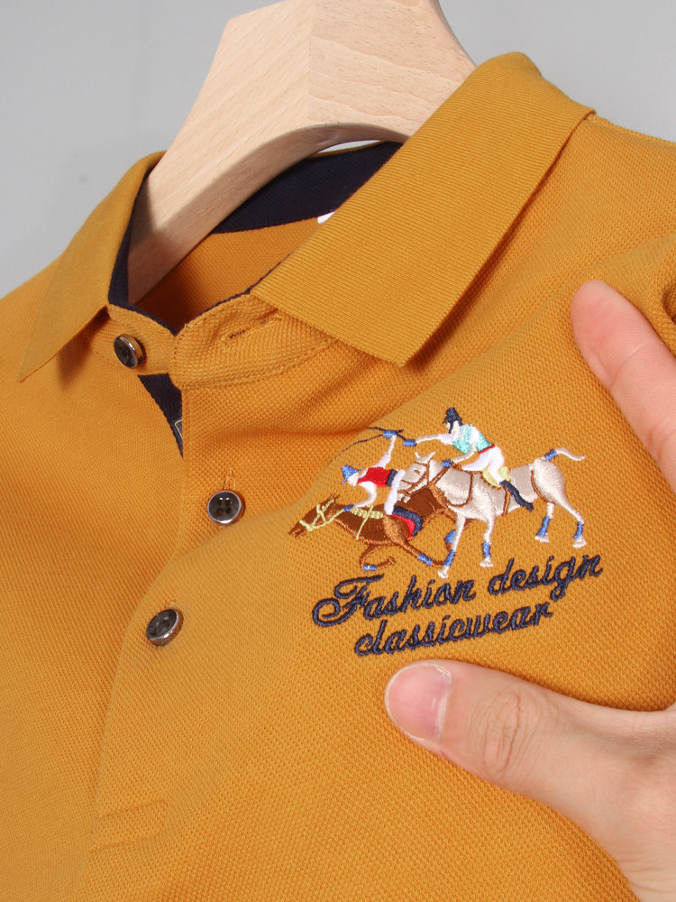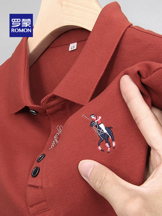 罗蒙纯棉长袖t恤男士高端刺绣保罗POLO衫春秋季休闲打底中年男装