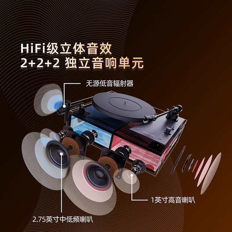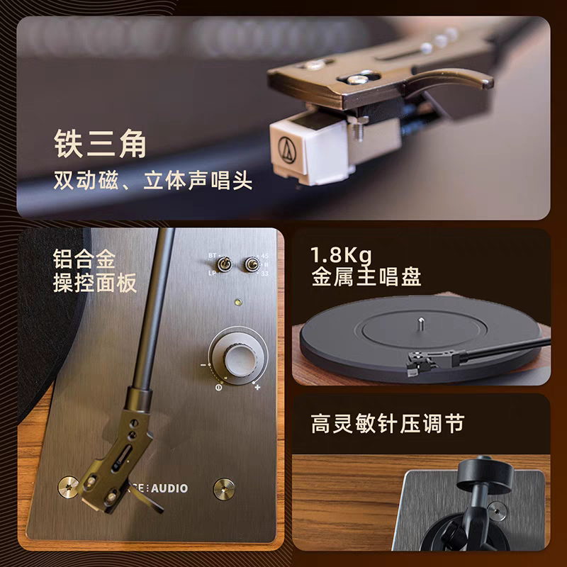 堆石x尊宝Jamo联名黑胶唱片机DS04蓝牙音响复古一体唱片机音箱