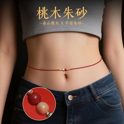 桃木朱砂本命年红绳腰链编织腰绳