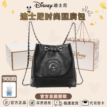 迪士尼正品包包新款秋季链条水桶包轻奢通勤多用大容量单肩双肩包