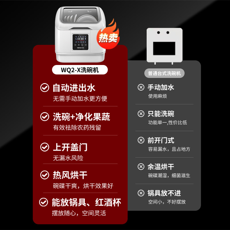 沃普思洗碗机全自动家用台式免安装迷你小型智能消毒杀菌烘干一体