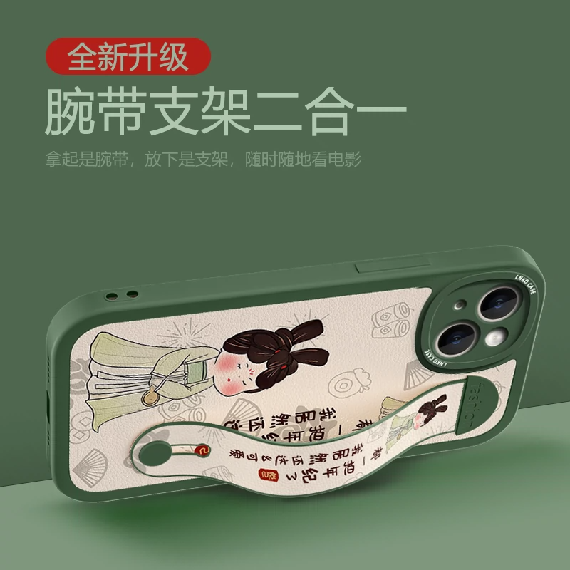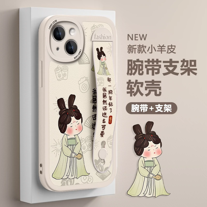 适用苹果15手机壳iPhone16腕带支架14小羊皮13硅胶12保护套11超薄Pro防摔max女xs新款plus外6s78壳xr镜头全包