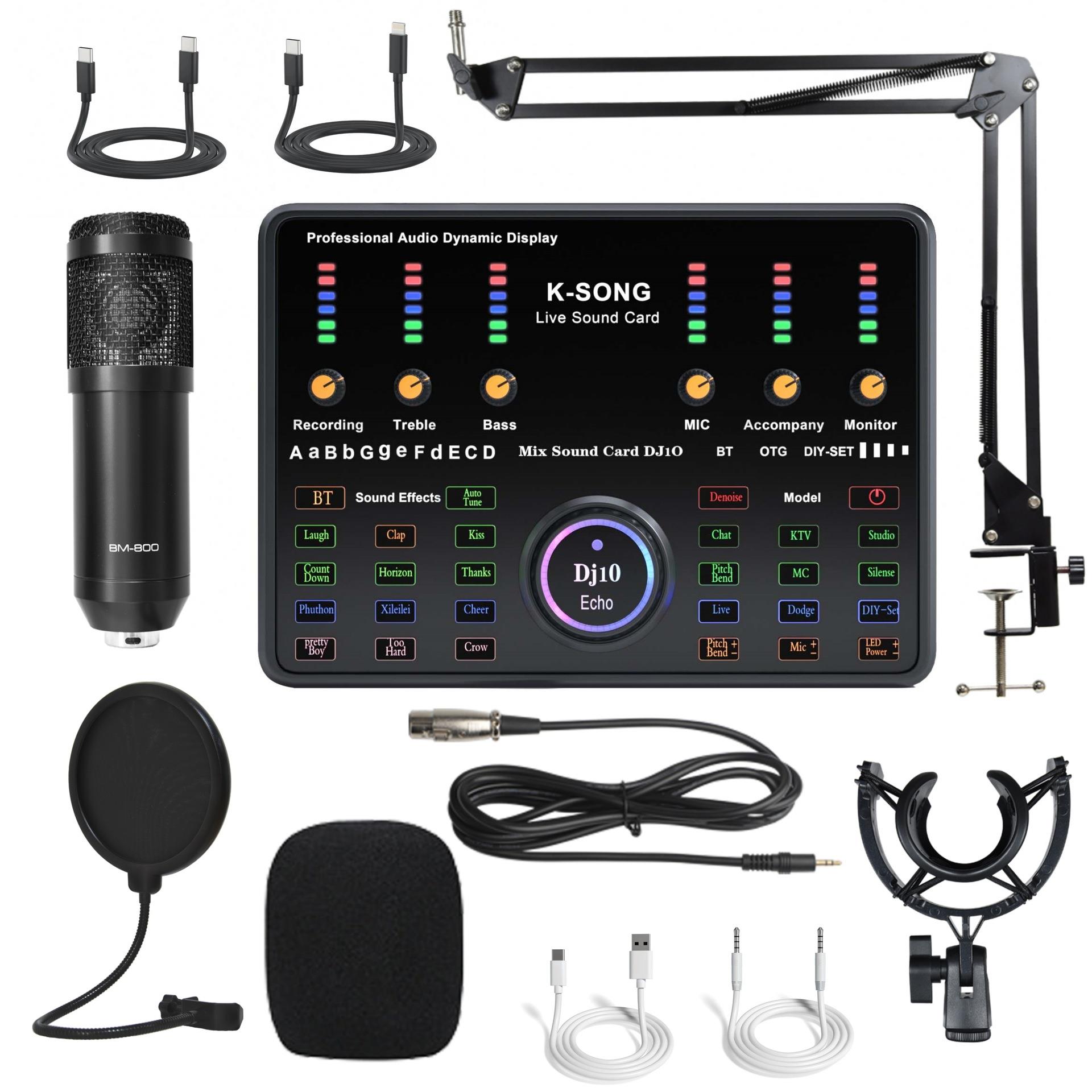 外贸英文声卡全套装 手机话筒电脑唱K歌录音设备麦克风