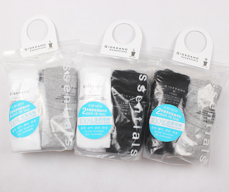 正品佐丹奴男士两件装圆领弹力短袖内衣纯色紧身打底衫男T恤汗衫