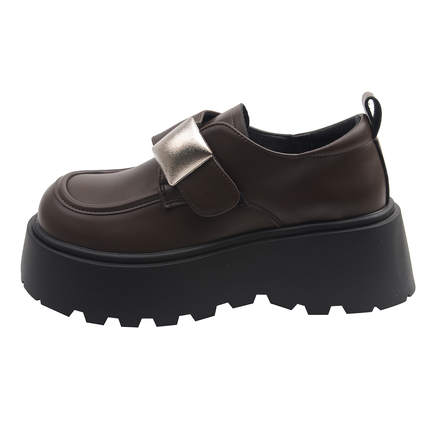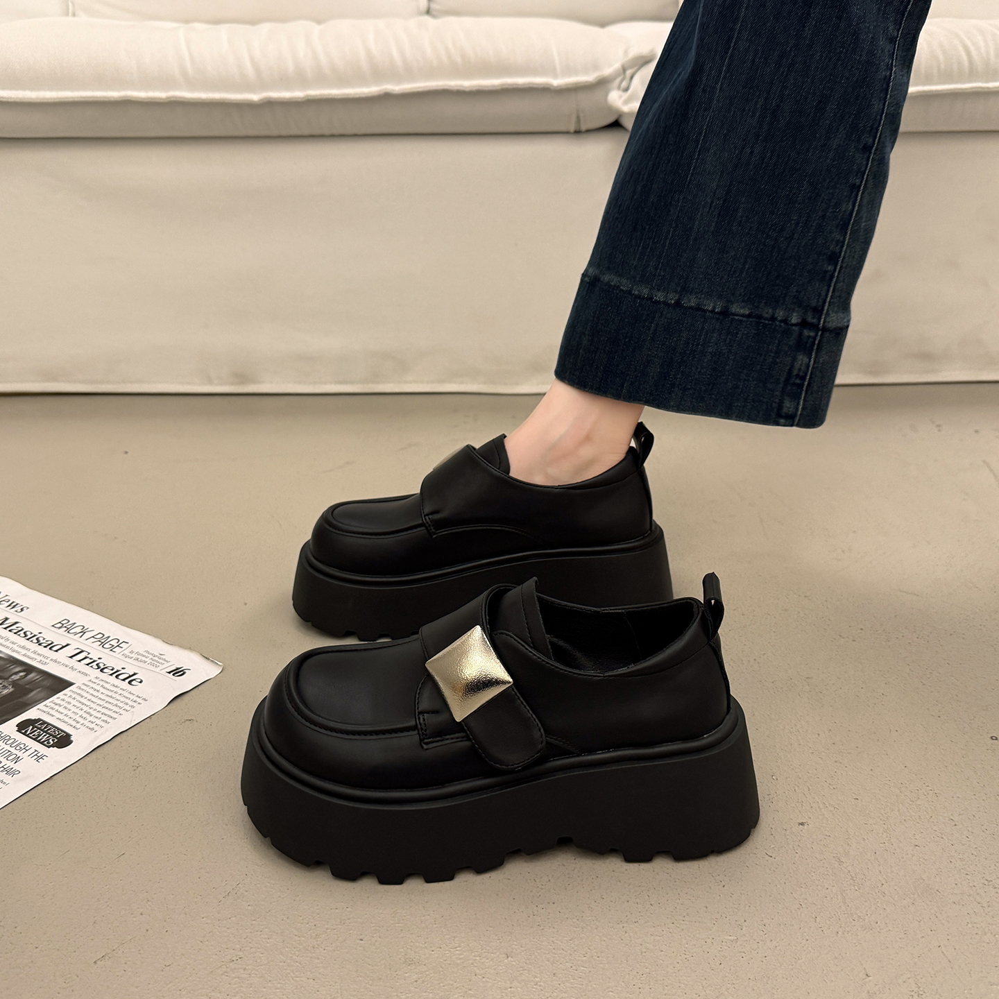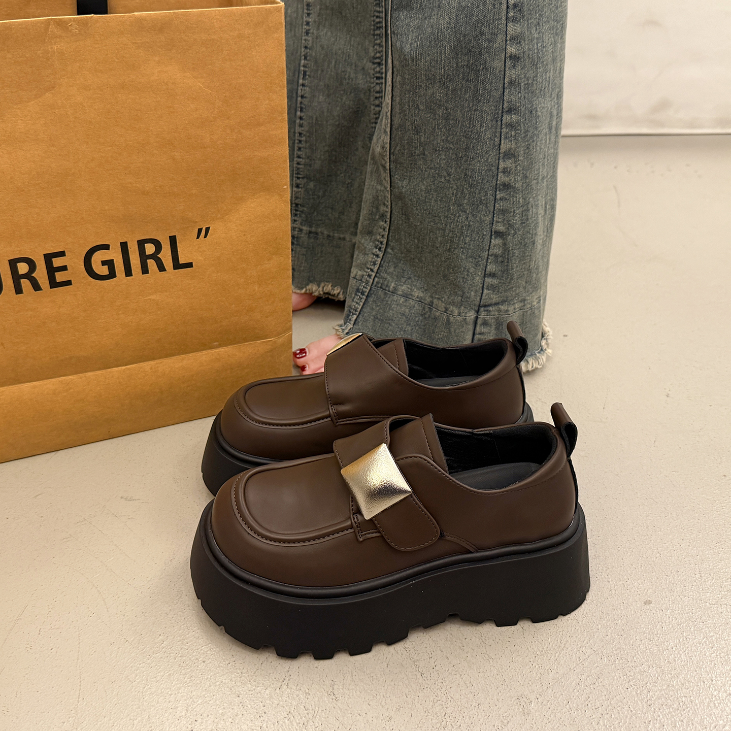 英伦风厚底增高小皮鞋女秋季棕色深口单鞋2025新款百搭乐福松糕鞋