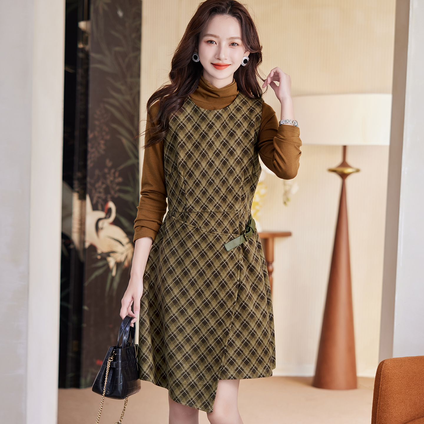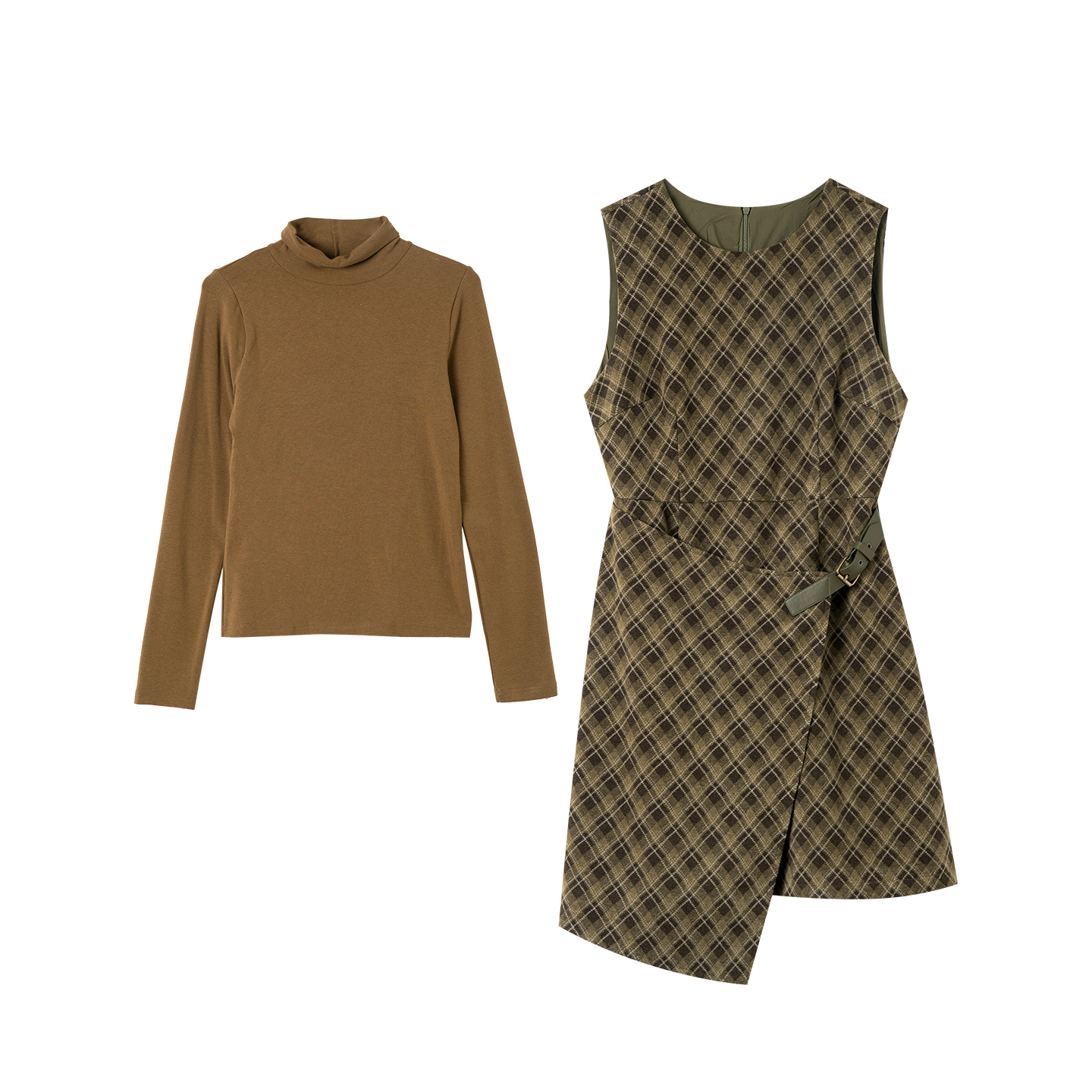 宝诗黎【新品价338元】两件套格子背心连衣裙AZA7132
