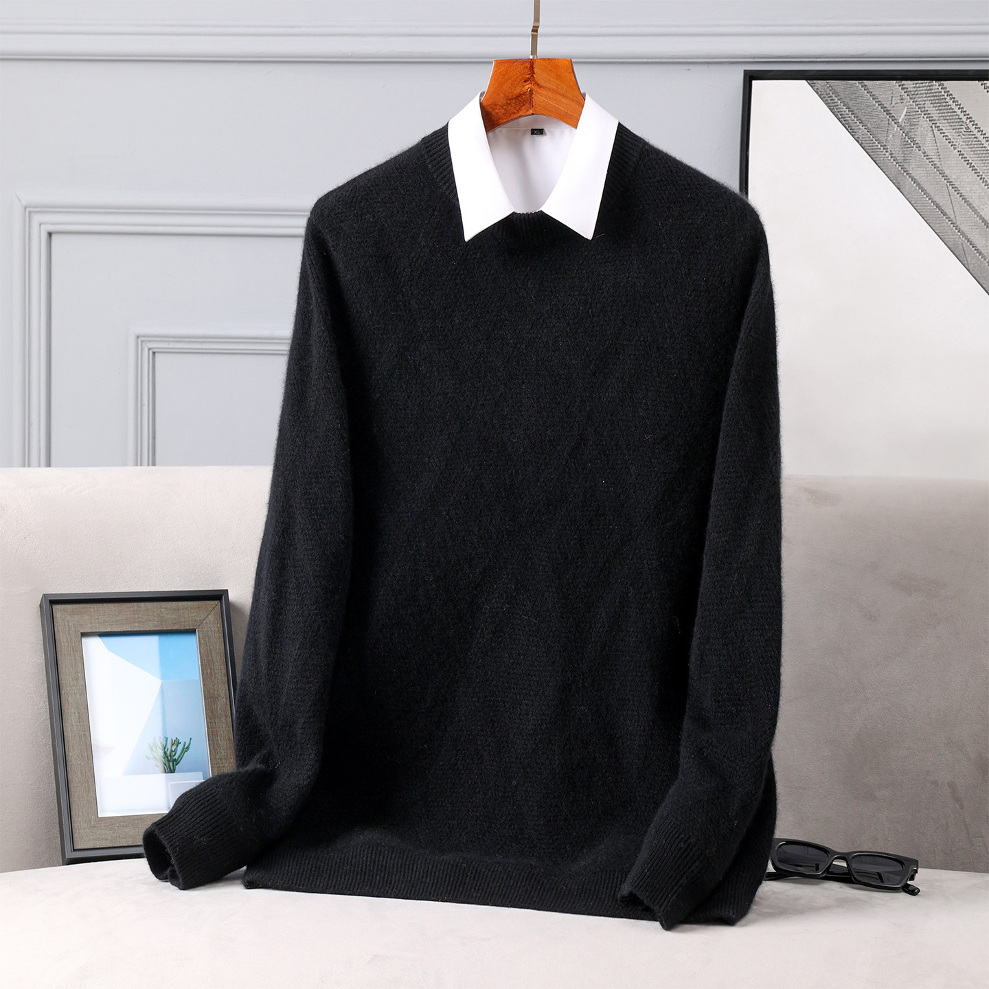 双股加厚男士100%山羊绒毛衣