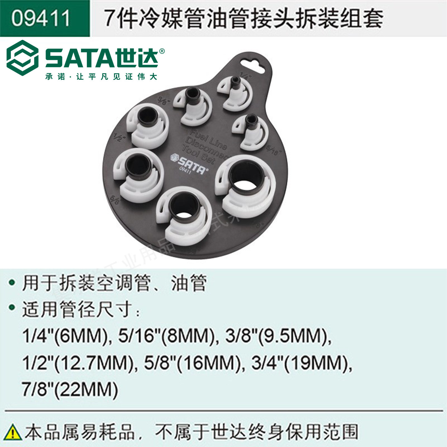 世达工具7件冷媒管油管接头拆装组套拆装汽车空调管油管工具09411