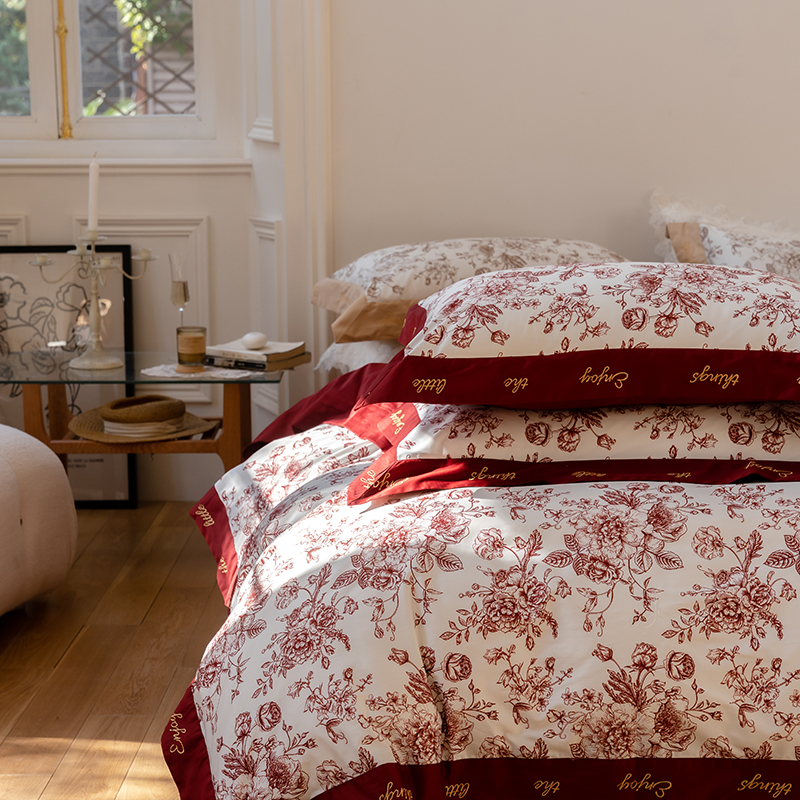 简约结婚四件套红色不掉色不起球