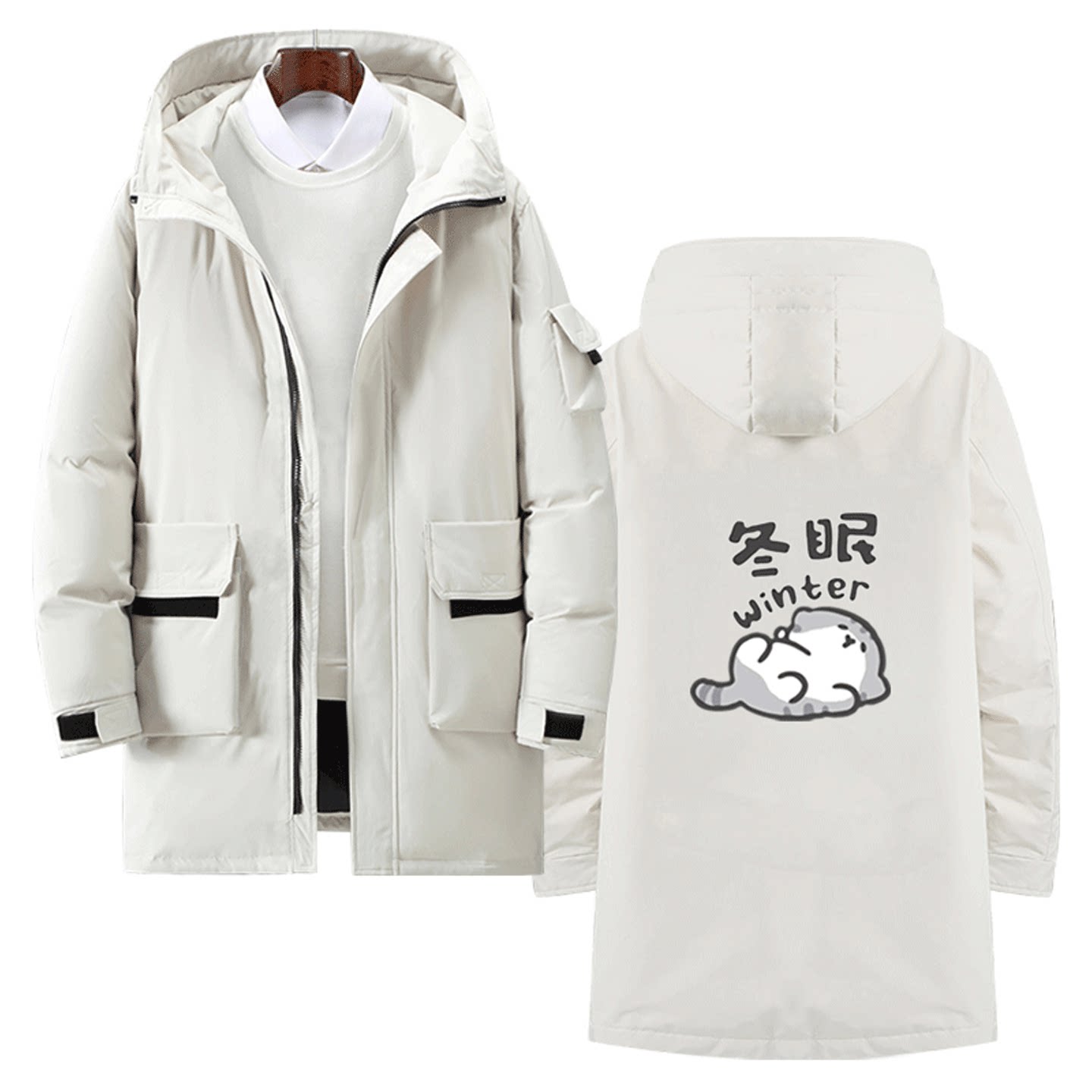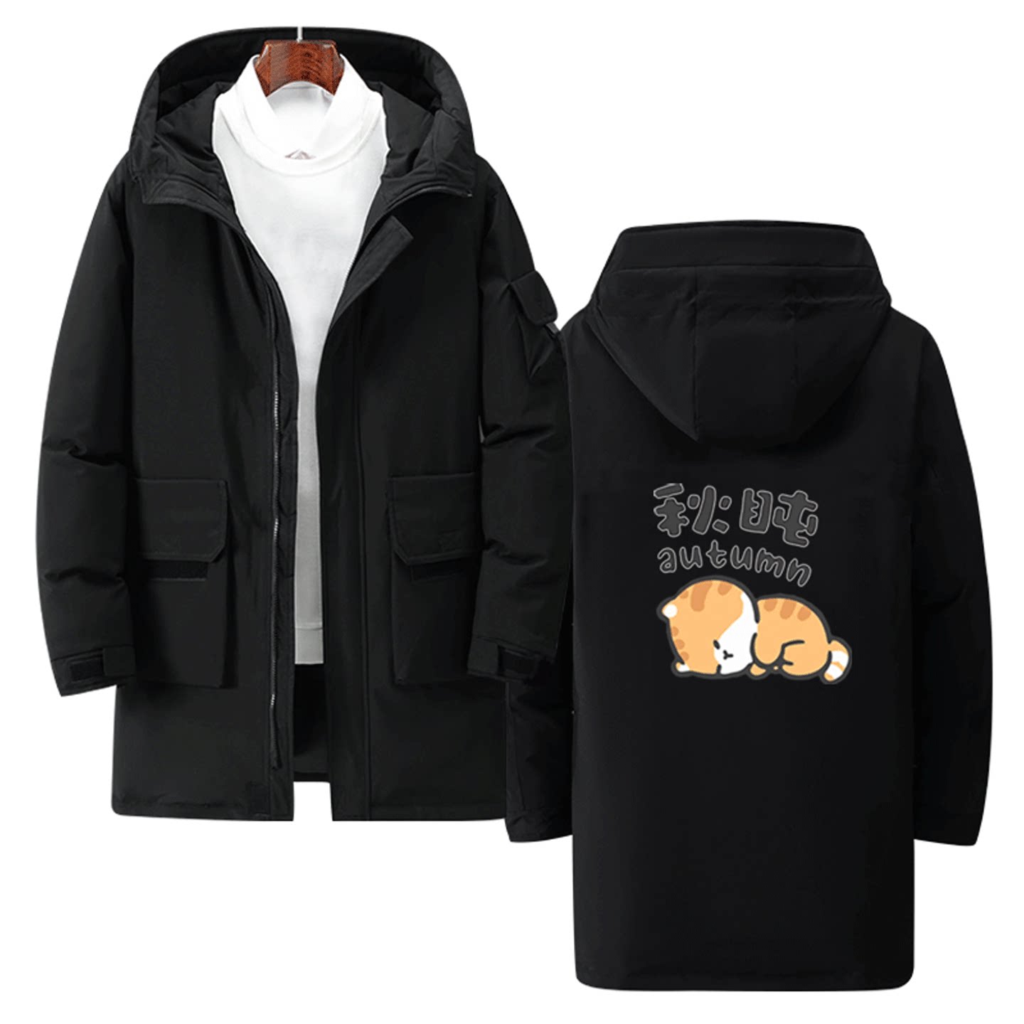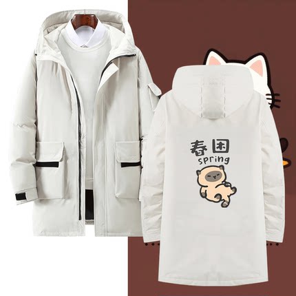 春夏秋冬小猫咪日系定制保暖中长款羽绒服卡通图案2025年男女情侣