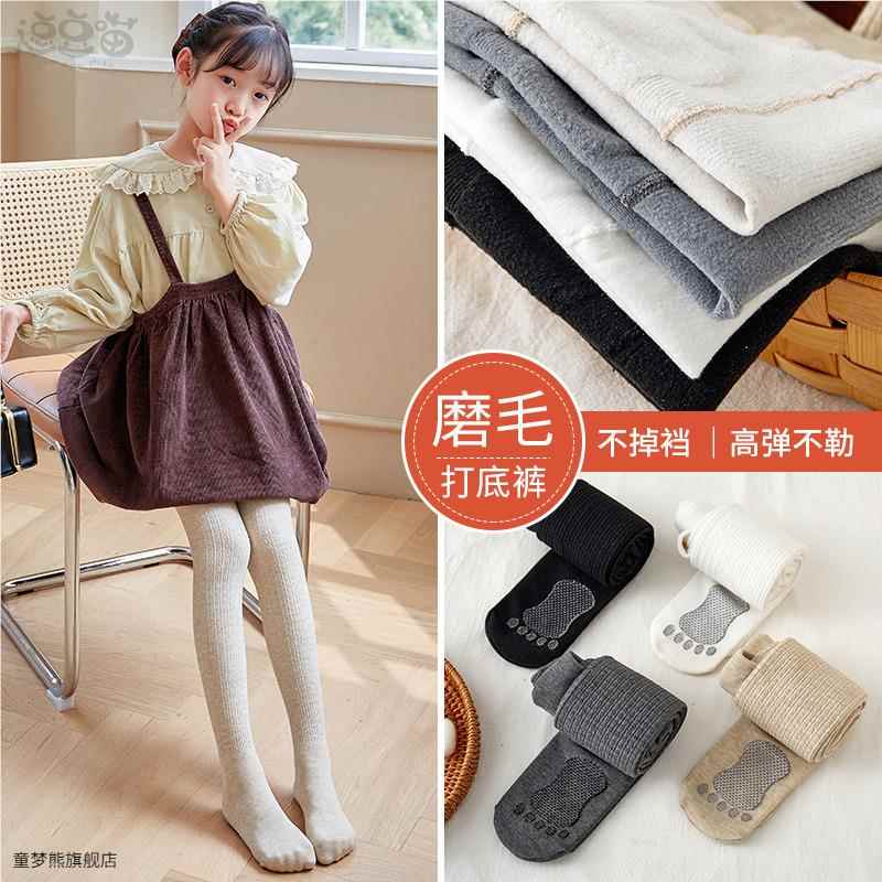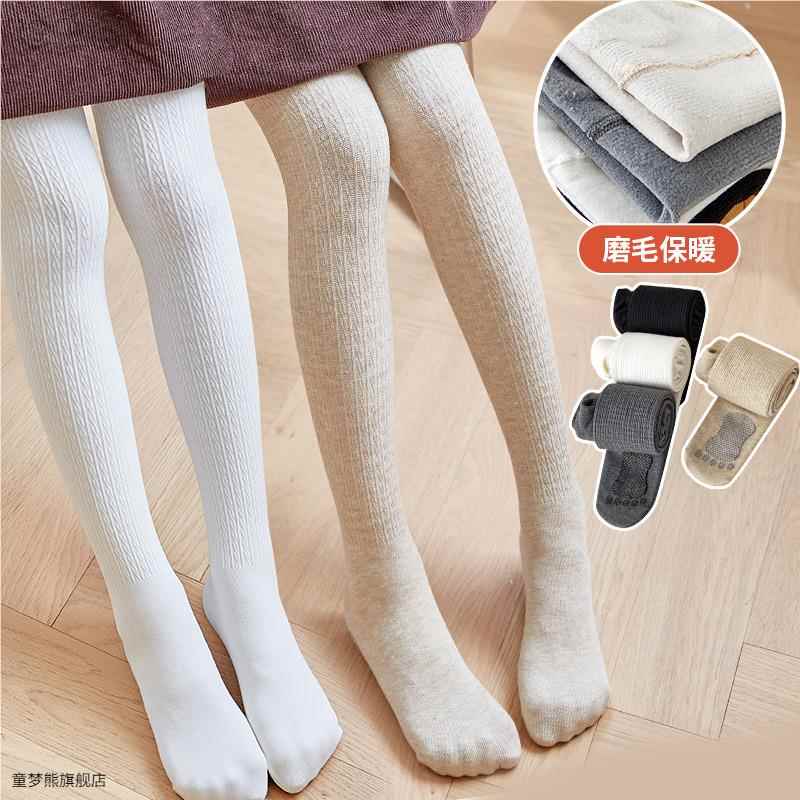 女童打底裤薄绒春秋款外穿白色宝宝连脚打底袜子加薄绒儿童连裤袜