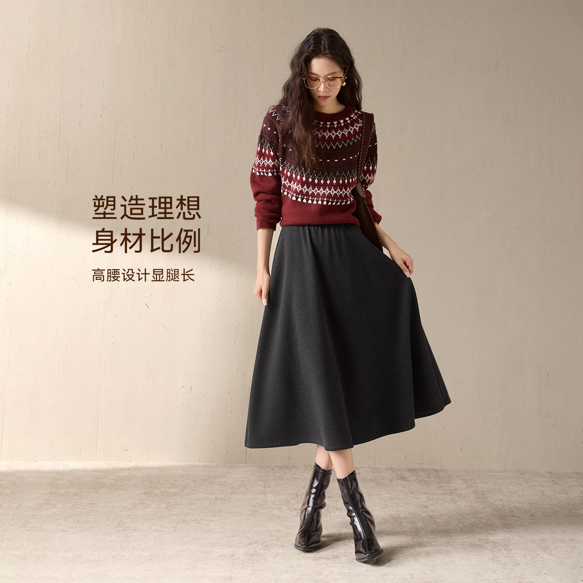 沫晗依美含绵羊毛暖绒针织裙高腰A字裙2025冬季百搭显瘦半身裙女