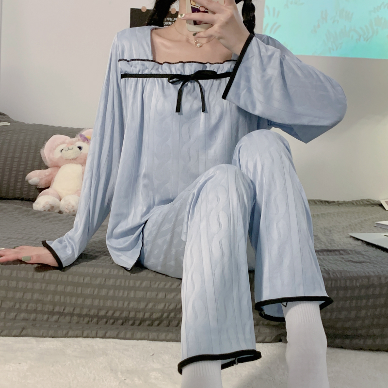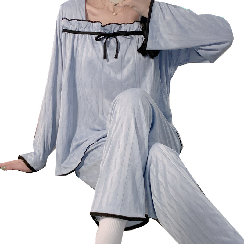 月子服夏季长袖春秋纯棉夏季薄款孕妇睡衣产后哺乳上衣夏天提花蓝