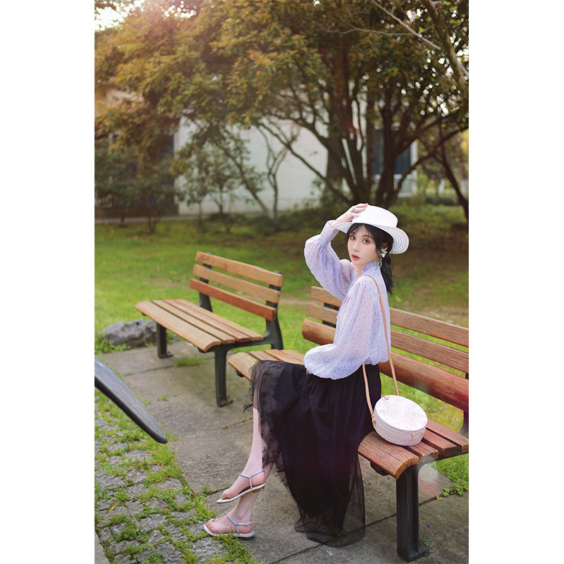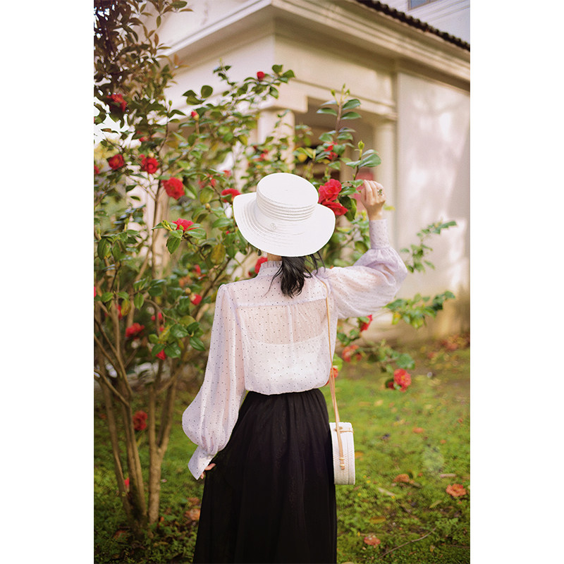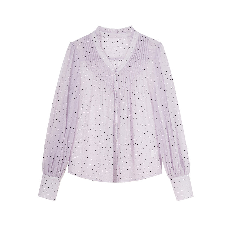 NANASTORE雪纺衫女2024春季新款宽松长袖上衣波点防晒衬衫T恤短款