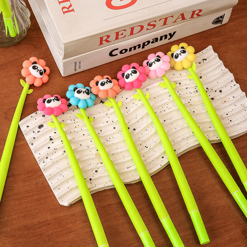卡通熊猫花朵摇摇乐中性笔小学生解压笔创意文具奖品实用儿童礼物