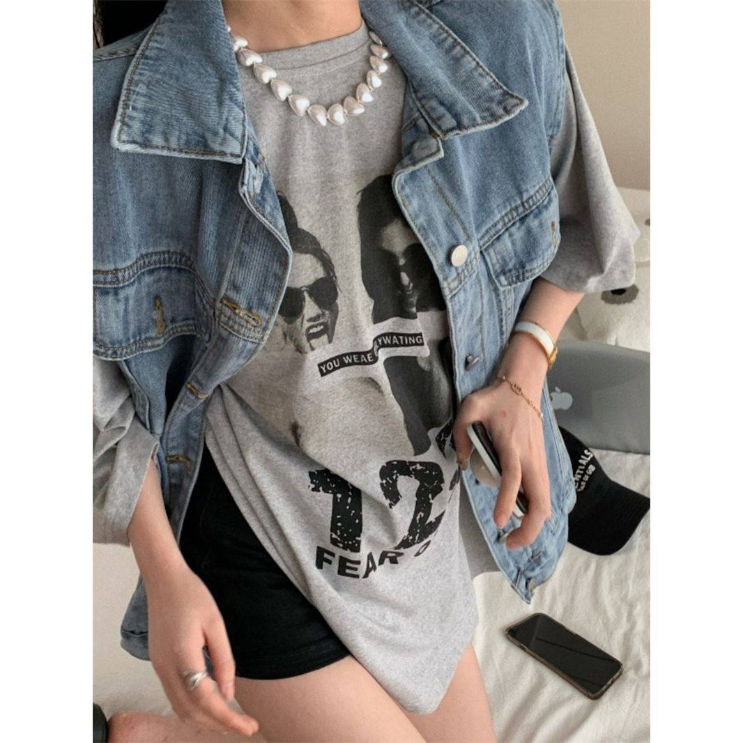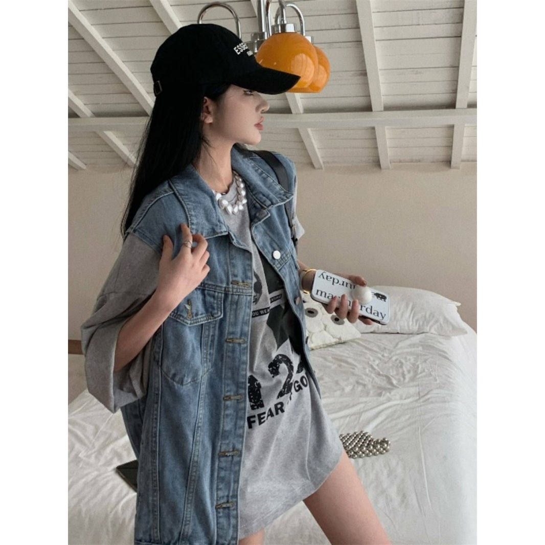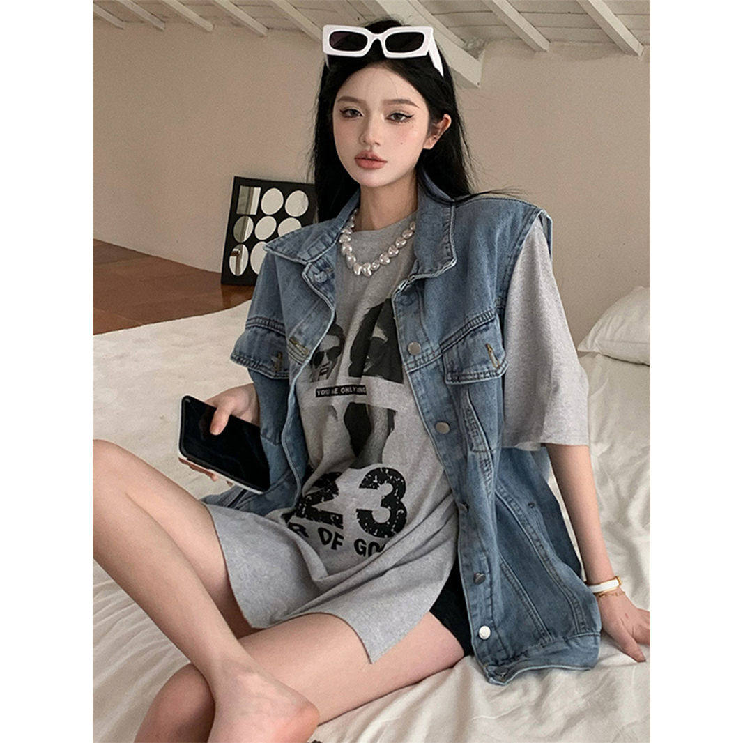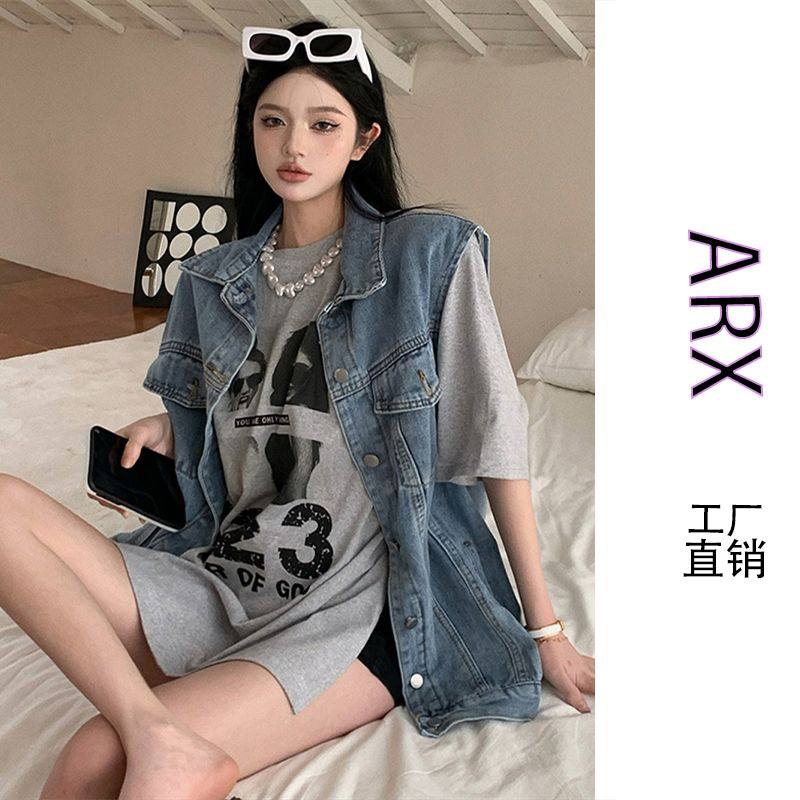 新款夏季港风复古外套女韩版中长款牛仔马甲宽松无袖坎肩上衣背心